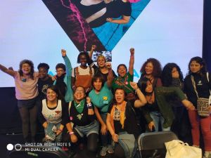 Entonces, qué se propuso ahí: se dieron expresiones de las cosmogonías territoriales, la espiritualidad, la medicina ancestral como un camino cósmico-político, pero también la comunidad, la territorialidad y la autonomía, el caminar de economía comunitaria, de reciprocidad. Y fue muy muy lindo. Y ver a las compañeras. Porque ahí nosotras expusimos. Estuvo Miriam Miranda, que es también del pueblo garífuna de Honduras y ella tiene una expresión también muy organizada en todo su caminar. Luego me escucharon a mí. Y luego también se escuchó a otras compañeras que se les dio el tiempo, de diferentes pueblos: del pueblo mapuche, de otros territorios… y después vía por mensajes se escribió. Si no daba tiempo para todas, escribieron también.