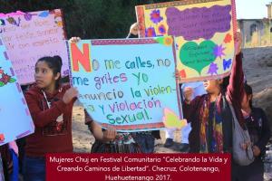 Cuando fue lo de la minería todo el mundo quería hablar contra la minería y lo logramos, pero nosotras dijimos, sí, vamos a hablar contra la minería, pero vamos a hablar de la violencia contra las mujeres. Eso le digo ahora, vamos a hablar para parar esta pandemia, vamos a luchar y vamos a salir, como dicen aquí juntos y juntas. Pero eso es una mentira que no te cree… ya te digo, el gobierno lo dice, pero es falso. No vamos a salir juntos y juntas de esto. Es falso. Pero las defensoras sí vamos a salir juntas en cuanto lo podamos denunciar, pero no silenciar, o sea, hay que encontrarnos en estos caminos para liberar vidas.