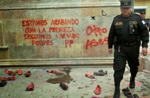 Cabe aquí hacer mención que el país de Guatemala está aún, la estadística del país lo califican como baja calificación de riesgo. Esto quiere decir que la tasa de interés bancaria aumenta y eso no lo debatió, no lo informó al pueblo. Fue y utilizó sus mecanismos de control del congreso, un congreso donde hay una expresión de unos diputados corruptos, diputados también que están como arrodillado ante la oligarquía para esa aprobación. Y efectivamente se aprobaron préstamos multimillonarios donde se vincula con el BID (Banco Interamericano de Desarrollo) y el BCIE (Banco Centroamericano de Integración Económica) y el Banco Mundial y otro. Entonces, esa fue otra expresión.