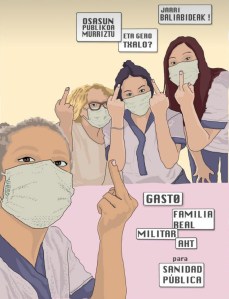 Recordamos que ese sector no sólo no estaba preparado para una situación así sino que estaba luchando para mantener unos mínimos. Huelgas de sanidad, huelga de las cuidadoras de ancianos, que lucharon por meses para que les reconocieran sus derechos en Bizkaia, y ahora todavía lo hacían en Gipuzkoa. Ahora las cuidadoras que se encerraban en las residencias, fuera de sus familias para pasar el confinamiento con las personas ancianas… Por supuesto que tenéis nuestro aplauso! Pero hay que estar con ellas en la huelga. Y nuestro más profundo desprecio a esos que ponen en riesgo las residencias y que eliminan cuidados a nuestros mayores mientras gastan en…