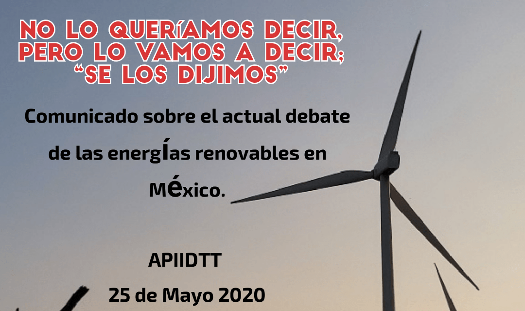 Lurraren eta Lurraldearen Defentsarako Istmoko Herri Indigenen Batzarraren (APIIDTT) komunikatua, Mexikoko energia berriztagarrien egungo eztabaidari buruzkoa