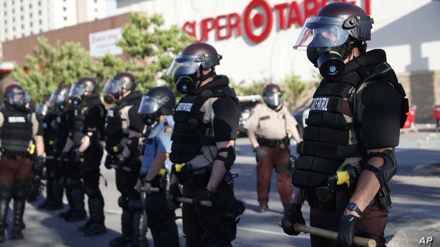 Hoy en la protesta a la que asistí había francotiradores de la Guardia Nacional en los tejados de Target. Esta era una multitud entre la que se encontraban niños. Más tarde por la noche la policía empezó a gasear a la gente y a disparar balas de goma de nuevo.
