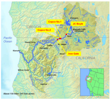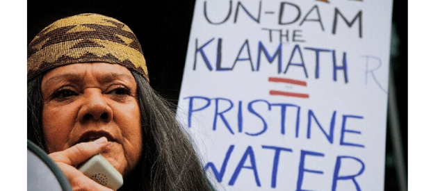 Las presas Klamath en el extremo norte de California y en el sur de Oregón en el oeste de los Estados Unidos han sido durante mucho tiempo un punto de controversia para las tribus indígenas y las organizaciones de justicia ambiental, con la Puerta de Hierro, la m
