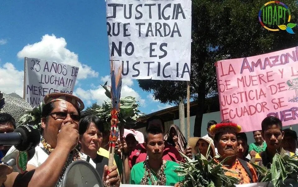 El 14 de febrero, del 2011, El presidente de la Corte provincial de Justicia de Sucumbíos, dictó la primera sentencia condenatoria en contra de la empresa Petrolera Chevron Texaco. Para la Unión de Afectados y Afectadas por las Operaciones Petroleras de Chevron en Ecuador (UDAPT) este fue un hecho histórico. Luego de más de 18 años de lucha jurídica, de haber acumulado más de 200.000 hojas de juicio, 80.000 resultados de análisis en agua y sedimento, 106 informes periciales; es decir una abrumadora prueba que demostraba el crimen cometido por la petrolera y que los más de 30.000 personas, pertenecientes a ocho Pueblos y Nacionalidades Indígenas (Cofán, Kichwa, Siekopai, Siona, Shuar, Waorani) y diversas comunidades colonas, tenían razón en sus reclamos. Esa prueba fué determinante para que el Juez adopte su decisión y ordene a la petrolera pagar una suma de más de 9.5 mil miliones de dólares para reparar el daño causado por la petrolera.