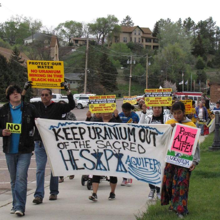 El gobierno estadounidense violó muy pronto el tratado que firmó 1868 con la Nación Sioux comprometiéndose a no permitir el asentamiento de blancos en Paha Sapa, el Tratado de Fort Laramie. Enseguida permitió que entrarán colonos a extraer oro, en 1874, con la infame invasión del general Custer. Así, en los años 1950 continuaron extrayendo uranio. De 1951 a 1964,se extrajeron 680.000 kg de pasta amarilla de uranio. En los 1980 grupos ecologistas consiguieron detener la extracción. Pero no se clausuraron propiamente, y las 150 minas que se abrieron han continuado filtrando uranio en el ambiente y en los cercanos ríos Missouri, afluente del Mississipi, y Cheyenne, afluente a su vez del Missouri.