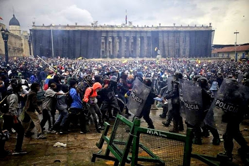 Ahora, el pasado 28 de abril de 2021, volvimos a las calles porque el Gobierno ha tratado de meternos una tercera reforma tributaria, con el fin de seguirnos exprimiendo, quitando a los más pobres lo poco que tienen con la excusa de la pandemia y sin tocar a los que tienen casi todo. Pero la gente no fue escuchada, sino reventada, golpeada, ultrajada y violada.