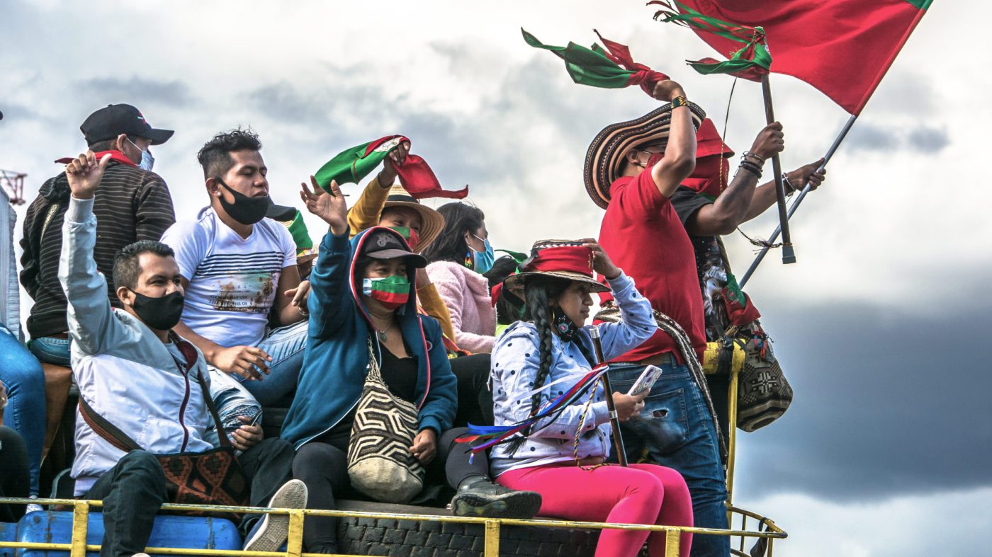 Foto: Arturo Larrahondo / Llegada de la Guardia Indígena Minga a Bogotá, Colombia – 18 de octubre de 2020.