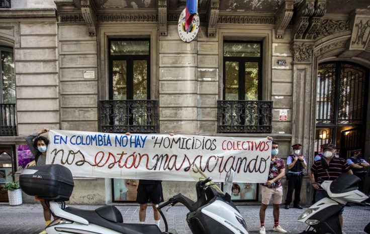 Desde el inicio del paro nacional en Colombia el pasado 28 de Abril, las muestras de apoyo desde Barcelona se han multiplicado por las calles. El 13 de Mayo un grupo de personas realizó una protesta pacífica en el consulado de la ciudad. La acción simbólica fue condenada por el Centro Democratico, el partido de ultraderecha de Uribe y la Cancillería de Colombia sacó un comunicado de prensa tachando la protesta en el consulado de «ataques vandálicos» y de «ingresar a la fuerza», dijeron además que las personas que se manifestaban pacíficamente habían «puesto en riesgo la vida de funcionarios y la prestación de los trámites y servicios que se ofrecen a connacionales». La realidad es que se trató de una acción pacífica, en las que se leyó un comunicado y se colgó una pancarta con un mensaje contundente de apoyo a las movilizaciones en Colombia. Fueron apenas 15 minutos en los que no hubo ningún tipo de enfrentamiento con las personas funcionarias y el mensaje se difundió por las redes a nivel internacional.