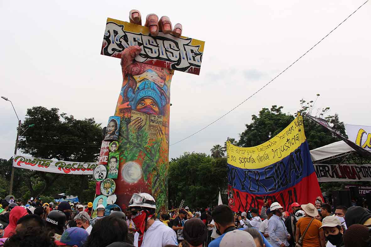 Principalmente por las personas que han muerto en Cali que, según Indepaz y Temblores ONG, son más de 30, este domingo se inauguró el monumento dedicado a ellos y a la resistencia de un estallido social que completa más de 45 días. Se trata de una mano que empuña un cartel en el que se lee ‘Resiste’ ubicada en el sector de Puerto Rellena o Puerto Resistencia, como fue bautizado desde el día uno.