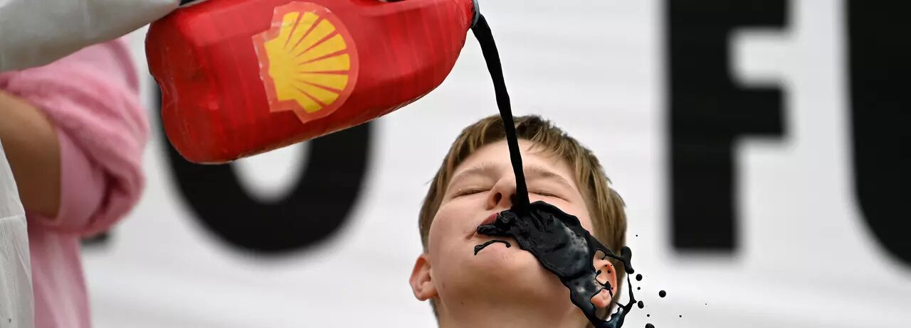FOTO: Activistas del grupo de protesta contra el cambio climático Extinction Rebellion vierten líquido negro representando petróleo en la boca de un compañero mientras se manifiestan contra el gigante petrolero Shell en la playa de St Ives, Cornualles, el 11 de junio de 2021. Era el primer día de la cumbre del G7 de tres días que celebrada del 11 al 13 de junio. Los líderes del G7 de Canadá, Francia, Alemania, Italia, Japón, Reino Unido y Estados Unidos se reunieron por primera vez en casi dos años para conversaciones en Carbis Bay, Cornualles. (Foto: Daniel Leal-Olivas/AFP vía Getty Images)