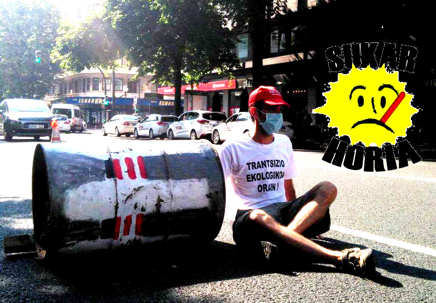 Baina krimenak oso bestelakoak dira: Sukar Horiak besoak bidoietan sartuta trafikoa 2 orduz moztu zuten, 2020ko ekainaren 24an, Bilboko erdiguneko Kale Nagusian, Eusko Jaurlaritzaren ordezkaritzaren aurrean. Eusko Jaurlaritzak Repsol eta Petronor bezalako enpresa kutsatzaileei eta larrialdi klimatikoaren arduradunei egindako mesedeak salatzen zituzten, trantsizio ekologiko justua eskatuz. Ekintza hauteskunde autonomikoen aurretik egin zuten, eta «aberats eta kutsatzaileek krisia ordain dezatela» leloa erabili zuten horretarako.