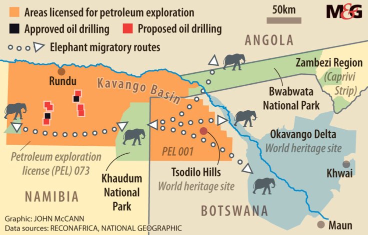 La transnsacional canadiense ReconAfrica ha adquirido los derechos de exploración de más de 35.000 kilómetros cuadrados en la cuenca del Delta del Okavango, en el noreste de Namibia, el noroeste de Botsuana y potencialmente el sur de Angola. Las previsiones son de entre 60.000 y 120.000 millones de barriles de petróleo y gas. Esta zona está considerada el «último paraíso de África» y está declarada Patrimonio de la Humanidad por la Unesco. La licitación incluye métodos convencionales y no convencionales como la fracturación hidráulica o fracking. En enero 2021 ReconAfrica inició las operaciones de perforación exploratoria en el primero de los tres pozos de prueba previstos en Kawe (Namibia), en la cuenca del río Omatako.