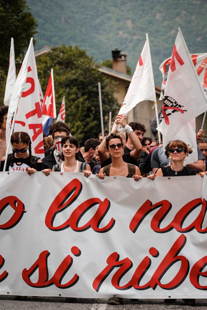 A las 14.30 horas, una larga serpiente de activistas comenzó a recorrer las calles de Venaus, formada por las numerosas personas que querían ver con sus propios ojos al monstruo que ha comenzado a comer árboles y arroyos en Val Clarea. Historiadores de No TAV, Valsusinianos, pero también muchos jóvenes que vinieron a respirar profundamente un aire que se ha vuelto cada vez más raro: el aire de la lucha y la libertad. Fue una alegría inmensa ver esas caras nuevas, con ganas de participar, con la convicción de estar en el lado correcto, que venían con una sonrisa a dejar por fin lo virtual y volver a lo real. La única lucha es la vida.