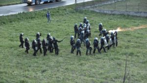 Mientras algunas personas de No TAV intentaban derribar la barrera con medios improvisados, otro centenar decidió tomar los caminos elevados donde emprendieron una serie de acciones para molestar a los policías dedicados a defender la obra de la vergüenza. En ambos casos, los agentes -casi 10.000 fueron enviados sólo en julio- gasearon a los manifestantes, confirmando su papel de fuerzas de seguridad privadas pagadas por el Estado para garantizar la tranquilidad de unas pocas multinacionales del cemento.