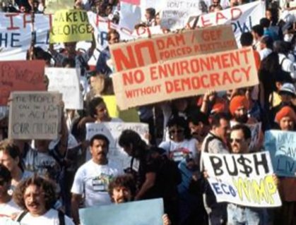 Hasieratik protesta sozialak antolatu ziren gobernuek konponbide gisa proposatzen zutenaren aurka. Jakina, askotan atzerapauso nabarmenak izaten ziren, eta ez zetozen bat markatutako bidearekin. Edo aurten bezala pandemiarekin, politikarik eza suposatzen zuten. 1992ko Rioko Goi Bileratik, Berlingo lehen COP hartatik, ekintzaileek NBEren Kongresu Jauregiaren sabaia hartu zutenetik, Greenpeacek bere karbonosauro erraldoia eraiki zuen 3. bileratik, mobilizazioak ugaritu egin dira, eta ekintzarik ezak aurrera egin ahala, gizartearen parte-hartzea ere handitu egiten zen. Kasu askotan, maitagarrien ipuinetatik esnatuz eta Estatuaren errepresioari aurre eginez, Kopenhageko kasuan bezala, edo geroago Parisetik eta beste batzuetatik, eta milaka joateko desafioa eginez.