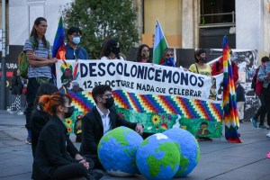 El 12 de octubre, día de la Hispanidad, y todavía denominado día de la Raza por algunos gobiernos de Abya Yala, XR se unió a Survival International y Fridays For Future para reivindicar JUSTICIA CLIMÁTICA con JUSTICIA SOCIAL. Para ello organizaron un evento público en la calle al que invitaron a organizaciones del Sur global y de los movimieńtos indígenas como la Organización Nacional Indígena de Colombia (ONIC), SOS Racismo, Plaza De los Pueblos, El descubrimiento de Europa, Espacio Afro, DESCOLONICÉMONOS 12 de Octubre Nada que Celebrar, Trawunche Madrid y Movimiento Wiphala España.