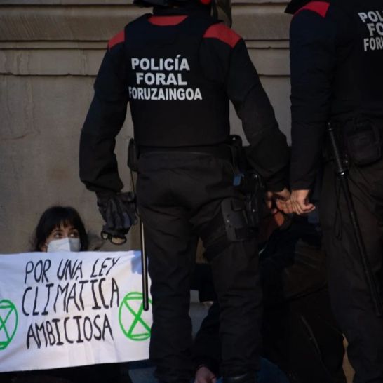 Este movimiento, que tiene un carácter internacional, lleva funcionando en Iruñea tres años, según ha explicado Domínguez, quien ha añadido que «entendemos que ya basta de prohibir pajitas de plástico. Quienes realmente tienen el poder para cambiar las cosas son las instituciones y, por lo tanto, realizaremos acciones directas, no violentas, pero disruptivas también para llamar la atención e incomodar al sistema hasta que se decida a tomar una acción contundente frente a esta crisis climática».