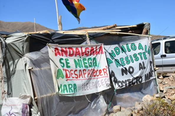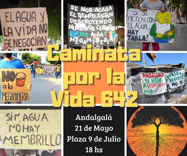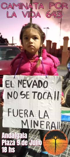 Andalgalá, en Catamarca, Argentina, es desde hace años epicentro de una de las mayores resistencias a la mega-minería a cielo abierto en ese país, junto a las provincias de Chubut y Mendoza. La oposición se centra contra la explotación Bajo de la Alumbrera y las proyectadas de Agua Rica y Pilciao. La principal demanda es la defensa del Agua y de la Tierra, pues ambas son contaminadas profusamente al extraer y pulverizar la roca, desprendiendo muchos metales pesados altamente contaminantes y nocivos.