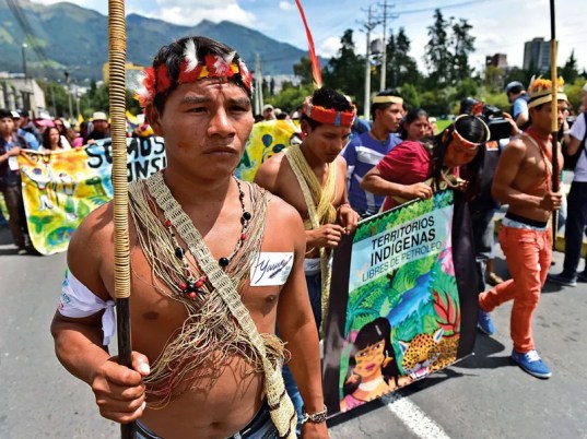 Además, los pueblos indígenas suelen ser descartados por los gobiernos, a menudo bajo la presión de las industrias extractivas, como la minería o la tala ilegal, que invaden los territorios indígenas. Dichas invasiones son con frecuencia el primer paso para la tala total del bosque y su sustitución por la agricultura industrial. Por ejemplo, el impacto destructivo sobre los pueblos indígenas y los pequeños agricultores, especialmente en Argentina, Paraguay y Brasil, de la confiscación de sus tierras para la producción de soja y maíz modificados genéticamente, en gran parte para su exportación a la UE, el Reino Unido y China, entre otros, ha sido un problema importante y creciente durante más de 20 años [xxxiv].