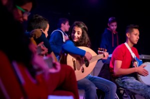 Los niños también son inmensamente sensibles a la opresión, sea cual sea. Cuando íbamos de gira con nuestros espectáculos por Europa o Estados Unidos, y cuando veían injusticias, podían identificarlas y señalarlas fácilmente. En 2005, hicimos una gira por Estados Unidos y pasamos una semana en Louisville, Kentucky. Aparte de nuestras propias actuaciones, también realizamos talleres conjuntos con niños afroamericanos, y después de unos días, al ver sus condiciones de vida y sus luchas diarias, algunos de nuestros niños reflexionaron: «tienen los mismos retos que nosotros», y «son incluso más pobres que nosotros». La opresión está en todas partes y tiene muchas caras, incluso en el país más rico del mundo. Nuestra relación con los niños palestinos se basa en el libre intercambio de ideas, y lo que aprendemos de ellos es mucho más de lo que podemos enseñarles. Estas giras internacionales permitieron a nuestros niños salir del campo de refugiados y de su vida bajo la ocupación, y pasar un tiempo en países libres. Pudieron descubrir que compartimos muchas cosas como seres humanos, y que estas similitudes deberían acercarnos los unos a los otros. También experimentaron las diferencias, y se dieron cuenta de que las diferencias son grandes regalos, que deberían enriquecernos y no hacernos temer a los demás. Reconocieron que los seres humanos compartimos y defendemos esos valores que llamamos libertad, paz, justicia, igualdad y amor, independientemente de nuestro color o religión.