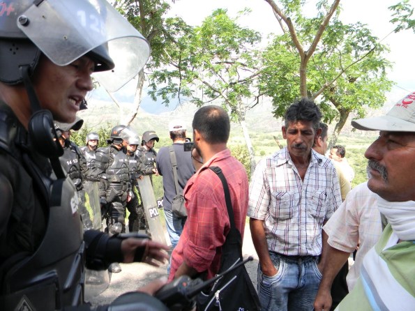 Al tercer día, pese a que la comunidad estaba reunida en un predio privado, la policía derribó el cerco y tiró al piso las ollas donde se preparaba el desayuno. Este último encuentro fue el detonante para que varios habitantes salieran de la zona caminando hacia Medellín, donde fueron albergados en la Universidad de Antioquia, protagonizando un desplazamiento forzado que se prolongó por más de siete meses.