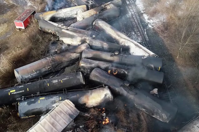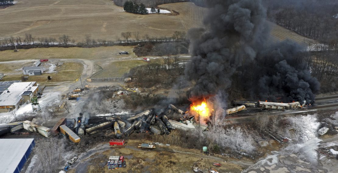 El 3 de febrero, un tren operado por Norfolk Southern Railroad con más de 150 vagones, 20 de ellos con materiales peligrosos, descarriló en una vía férrea en el oeste de Ohio, EE. UU. Como algunos productos químicos eran inestables, el operador del tren optó por quemarlos y arrojarlos al río Ohio. La quema de cloruro de vinilo obligó a los residentes a evacuar el área, ya que su gas puede ser mortal.