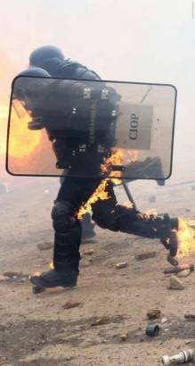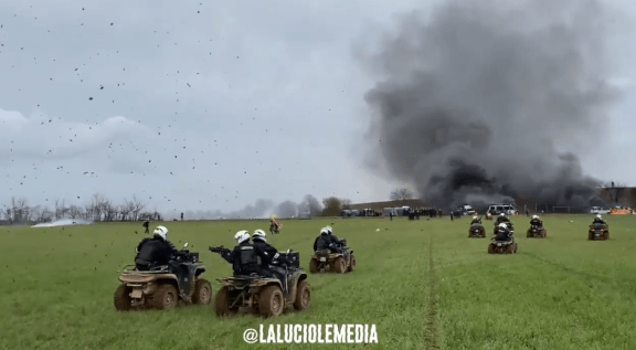 Pero los y las manifestantes no se quedaron atrás y también respondieron: las imágenes de las furgonas policiales ardiendo en medio de la campiña francesa son elocuentes, con los policías sin saber a donde ir. Con ellas también se carbonizaron muchas de sus letales armas. Una bomba de embalsamiento fue también inutilizada y las activistas también ocuparon las líneas de LGV (tren de alta velocidad).