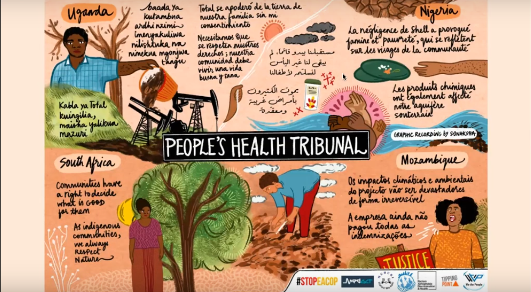 Maiatzaren 13an hasi zen Afrikako Eredu Estraktibistaren Osasun Efektuen aurkako Herri Auzitegia. Epaia maiatzaren 20an argitaratu zen. Auzitegia kontinente horretako Shell eta Total petrolio-enpresen inpaktuetan zentratu zen, eta 5 lekukotza izan zituen kasu bakoitzerako. Lekukotza horiek Niger ibaiako, Hegoafrika, Mozambike eta Ugandako komunitate eta ekosistemetarako petrolio-erauzketaren errealitateak islatu zituzten, giza osasuna ardatz hartuta.