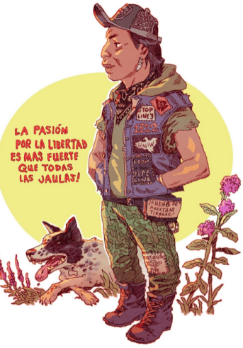 Como migrante indígena, el Estado me ha llamado muchas cosas. Ahora más que nunca, sigo resistiendo esta ridícula narrativa y estos nuevos cargos RICO (*). Soy un sundancer, un defensor de la tierra, un frontliner, que vive en tierras y territorios indígenas ocupados con obligaciones y responsabilidades debido a mi presencia aquí; soy un guerrero no según la definición de nadie más que la mía y la de mi pueblo. Estas son las identidades que aprecio. Como algunas de estas identidades se han utilizado como arma para oprimirme, las utilizo como arma de mi propia liberación. Protejo, cuido y amo de estas formas tan profundas.