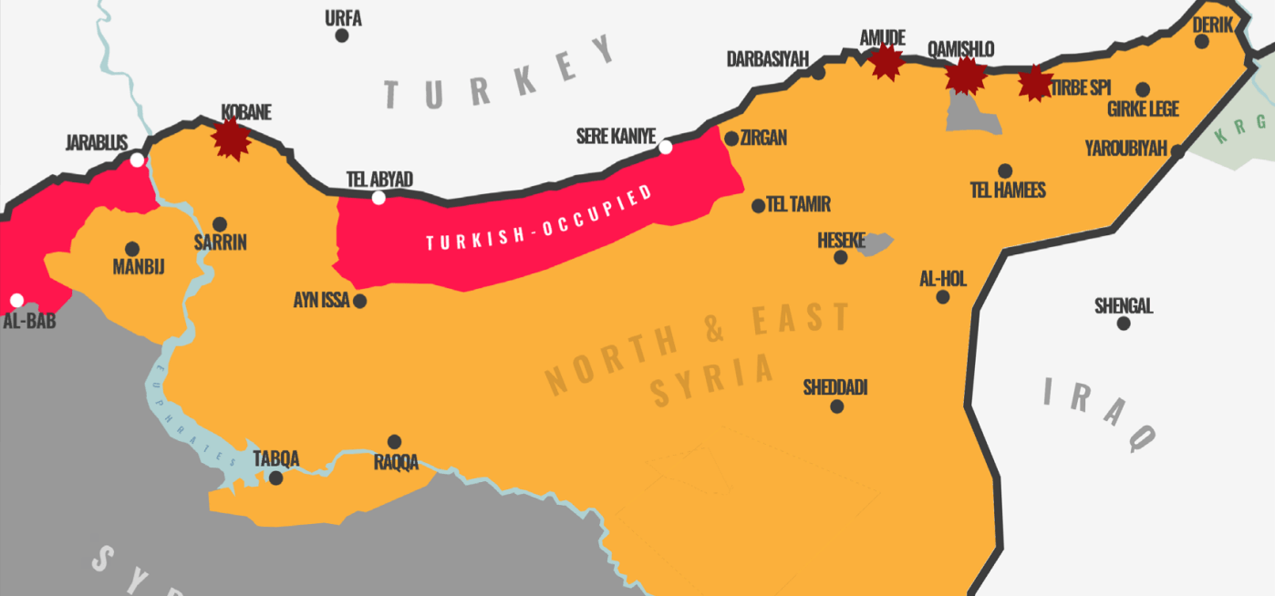 - El 23 de diciembre, en las montañas de la Región del Kurdistán de Irak (KRI), los militantes del Partido de los Trabajadores del Kurdistán (PKK) llevaron a cabo operaciones contra posiciones de las Fuerzas Armadas Turcas (TAF), matando al menos a 12 soldados turcos; el presidente turco Erdogan se refirió a los ataques como «terroristas» y prometió venganza; en la noche del 23, el TAF procedió a atacar emplazamientos de infraestructuras petrolíferas y de gas en NES, cortando la energía de las subestaciones eléctricas que abastecen a la mitad del cantón de Jazira e hiriendo a un civil; el Ministerio de Defensa turco anunció que estos ataques aéreos eran «contra objetivos terroristas» con fines de «seguridad fronteriza»