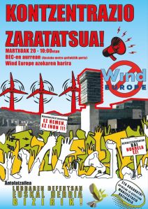 Gaur, martxoak 20, elkarretaratzea egin dugu Wind Europe Annual Event 2024-aren kanpo (Europako Industria Eolikoaren Urteko Kongresua), Barakaldoko BECen. Kongresu honek enpresa eta politika munduko ordezkariak biltzen ditu, berdez makillatutako burbuila ekonomiko berri hau elikatu nahian. EH Bizirik-ek natura eta landa ingurunea suntsitzen duten makro proiektuen inposaketa salatu du, multinazionalen eta inbertsio funtsen mesedetan.