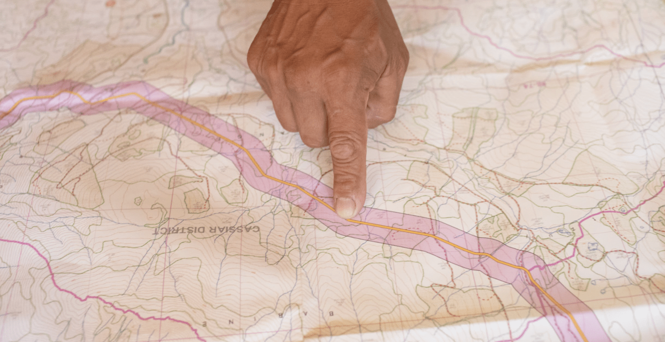 Después, el grupo se reúne en torno a un gran tablero de papel en el salón para trazar estrategias sobre cómo defender sus tierras del PRGT. Intercambian ideas, garabateadas en forma de puntos en la pizarra, y determinan las zonas clave que piensan cerrar cuando llegue el momento.