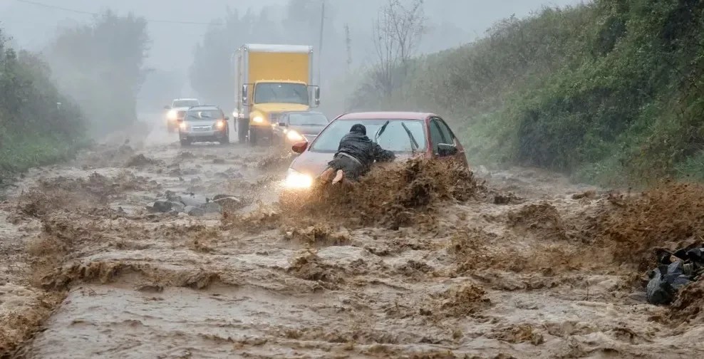 Foto: Un residente se esfuerza por ayudar a un conductor y su coche durante el huracán Helene. (Foto facilitada por la autora)