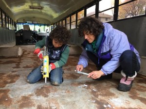 Las noches antes de separarnos, antes de dejar a Zazu para sus primeros tres meses en su nueva educación al aire libre, la escuela Montessori-sus Ritos de Paso fuera de Asheville, Zazu y yo leemos en voz alta el uno al otro Maestros del Silencio-una historia notable sobre los huérfanos refugiados judíos que se esconden en un convento de los nazis. Comunidades enteras borradas. Tanques de propano flotando y carretera derrumbada cerca del River Arts District de Asheville.
