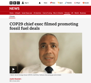 En lugar de defender su propio abandono rápido de los combustibles fósiles y ayudar a Azerbaiyán a hacer lo mismo, la UE está presionando al país para que aumente la producción etiquetando su gas como «de bajas emisiones». Como es lógico, Azerbaiyán ha seguido su ejemplo. Cuando el director ejecutivo de la COP29, Soltanov, fue grabado en secreto por periodistas encubiertos que se hacían pasar por inversores energéticos ficticios, les ofreció participar en un acto sobre «inversiones sostenibles en petróleo y gas» a cambio de patrocinar las conversaciones. También se le grabó diciendo que el gas era un «combustible de transición» y que la COP29 consistía en «abandonar los hidrocarburos de forma justa, ordenada y equitativa». Todas estas son cosas que la UE ha normalizado.