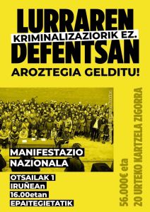 Jakina, urtea aldatu eta ospatzea sinbolismo hutsa besterik ez da; izan ere, bizitzak jarraitzen du eta harekin batera proiektuak, negozioak, iruzurrak, eta horiekin batera eraginak, kalteak… eta borrokak… eta errepresioa , eta… Beraz, ez dago ospakizunetarako denborarik. Datorren urterako nahi eta itxaropen asko izan arren, badakigu zerbait lortzeko modu bakarra kalera irtetea eta proiektu eta errepresio horiei planto egitea dela. Horregatik jarraitzen dugu hemen.