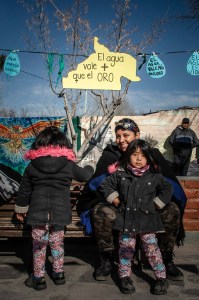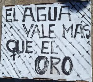 Eztabaidatzen ari garena: ura zaindu behar da, goi-lautada, eskualdea, estepa oso lehorra da, urtaroko euriteak, eta uraren eta napen erabilera meatze-enpresei eskaintzen ari zaizkie. Beraz, hori genozidioaren jarraipena da. Ea beharrezkoa den lurraldeko ura eta jendea, «urak gure auzoetarako» eta «urak urreak baino gehiago balio du» desberdinak dira, protesta bakoitzean garatzen diren kontsignak.