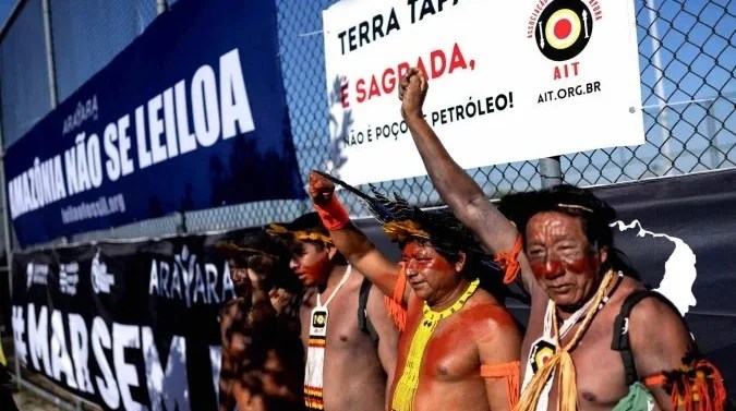 Argazki nagusia: Indigenek protesta Rion petrolio blokeen enkantearen aurka, Ekuatore Ertzean eta Abrolhos