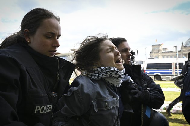 La policía berlinesa comenzó el viernes a desalojar un campamento pro-palestino («Besetzung Gegen Besatzung» – «Ocupación contra la ocupación») instalado frente al Parlamento alemán por activistas que exigen al gobierno que detenga las exportaciones de armas a Israel y ponga fin a lo que consideran criminalización del movimiento de solidaridad con Palestina. Esta acampada comenzó el 8 de abril, coincidiendo con el inicio de las audiencias de la Corte Internacional de Justicia en el caso de Nicaragua contra Alemania por proporcionar ayuda militar a Israel, y continuó hasta el 26 (18 días).