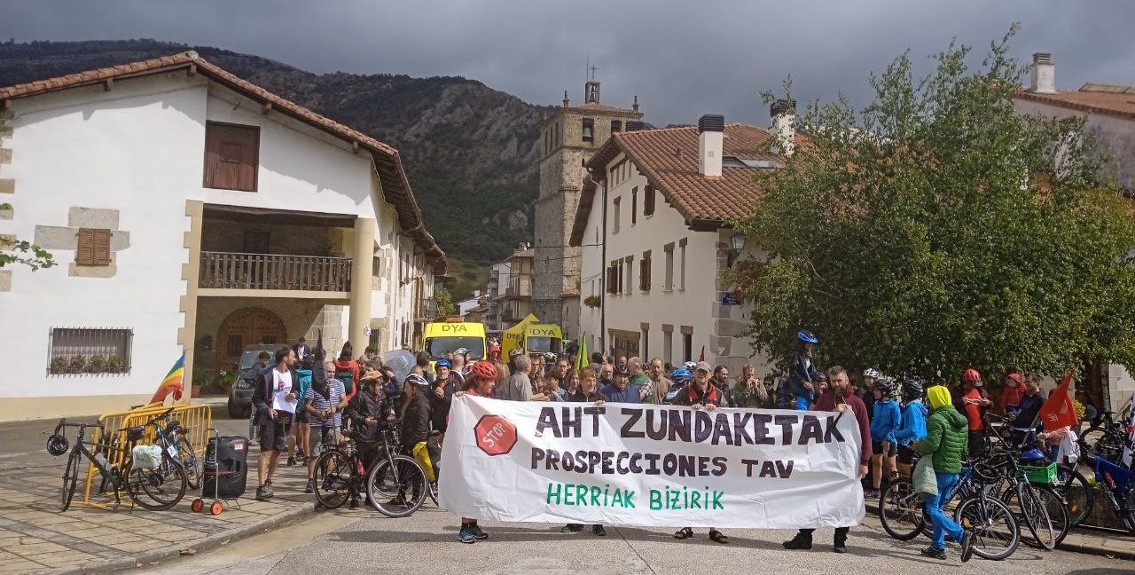 Entre el 25 y 27 de agosto se ha realizado la marcha ciclista contra los sondeos que han anunciado para un nuevo tramos del Tren de Alta Velocidad entre la Sakana (Nafarroa), Goierri (Gipuzkoa) y Lautada (Araba). El objetivo de la misma es concienciar a la población de la necesidad de paralizar estos sondeos y fortalecer las relaciones entre la gente opositora al TAV de esas zonas y el resto de EH. Aquí od ofrecemos la crónica escrita por las propias protagonistas.