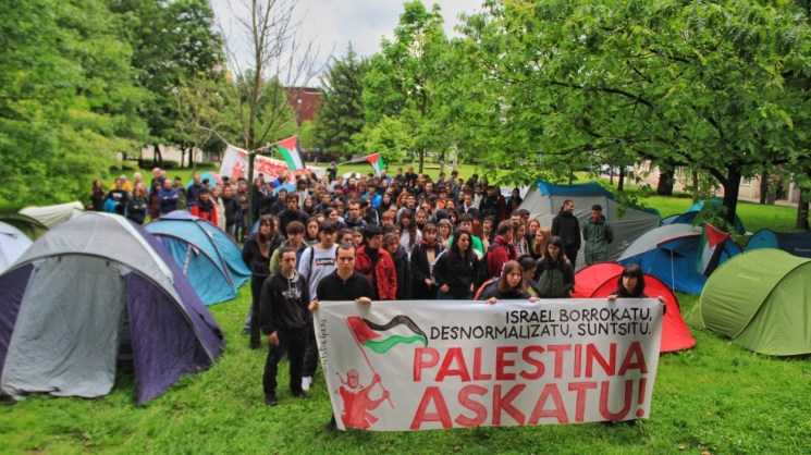 As stated by the Basque branch of Boycott, Divestment and Sanctions Movement (BDS), it also joins and supports and promotes the encampments promoted by different student groups in the universities of Euskal Herria.