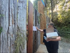 Frente a la oficina del consejo tribal de Pacheedaht, la consejera jefe electa Arliss Daniels presenta una perspectiva totalmente diferente a la de los y las defensoras del bosque acampados en el territorio de su nación. Daniels, que se niega a ser fotografiada y solo concede una breve entrevista, deja clara la postura de la nación: los y las defensoras de la tierra no son bienvenidos y se les ha pedido que se marchen.