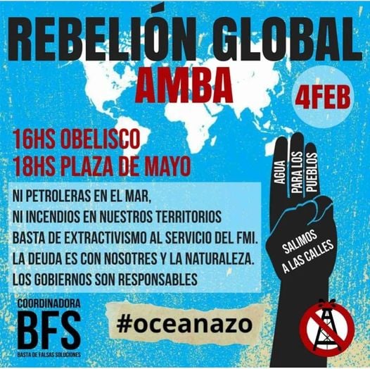 Without waking up from the Glasgow fiasco, the Argentine government signed also an agreement with the IMF to pay off its (fraudulent and odious) debt by announcing the exploitation, after exploration, of possible offshore deposits off the coast of Chubut. We have already reported on the popular sentiment against other extractivist proposals in the same province, which last month managed to stop new exploitation attempts. As well as the unease about the disaster of conventional and non-conventional oil exploitation in Neuquén and Río Negro, where this week Mapuches again blocked roads due to non-compliance with agreements. So the new proposal has been met with a massive response from society, in what has been called the Atlanticazo and articulated by the Assembly for a Sea Free of Oil Companies and existing organisations such as the Observatorio Petrolero Sur (OPSur).