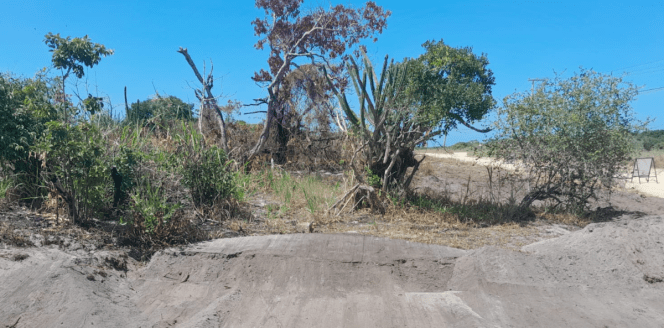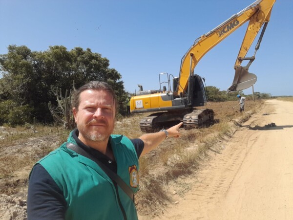 A few days ago, work began on the destruction of the vegetation cover and the fragile soil of the restinga. The men of the village are no longer allowed to move through the APA in search of the swamp from which they build their huts, and the young Indian girls have been barred from the fields where they find the seeds from which they make handicrafts.