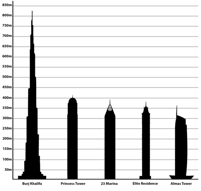 Para os Emirados Árabes Unidos, assim como para outros países ricos, não basta construir uma ou duas torres. Foi necessário construir um horizonte de arranha-céus para mostrar seu poder, para se equiparar a outras potências, para alcançar a estatura (nunca foi melhor dito) dos países mais ricos, para demonstrar que sua riqueza está no mesmo nível das maiores potências.