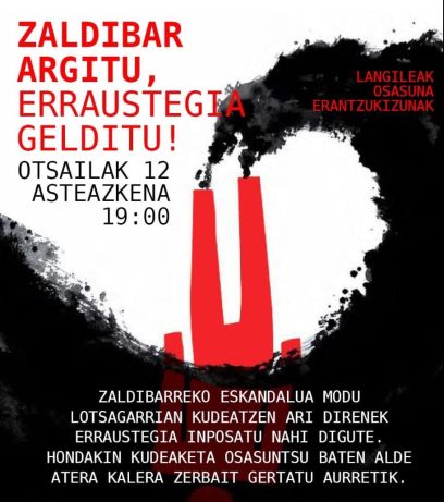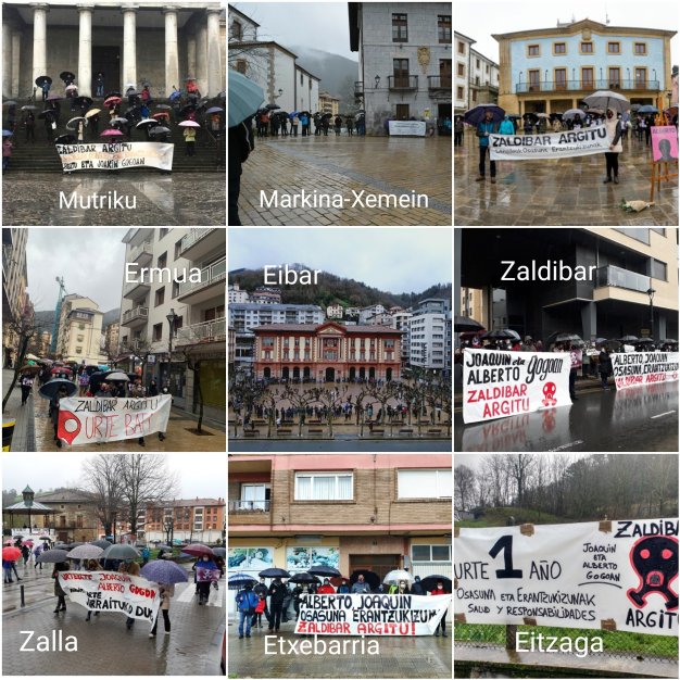 Zaldibar Argitu is the local platform created after the crime and that, as its name in Basque indicates, seeks to shed light on it. Zaldibar Argitu has organized numerous acts of protest as soon as the accident occurred and afterwards, with at least one demonstration per month (it must be taken into account that in March restrictive measures were introduced to alleviate the pandemic, and that also at an informative level, this has taken away space from other information).