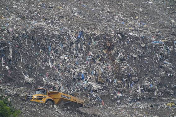 An industrial waste landfill with no measures in place