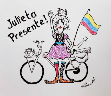 Julieta era venezolana, activista de la bicicleta, mujer con un proyecto en solitario e independiente de democratización y descentralización de las prácticas sociales y culturales, payasa, escritora y titiritera. Fue veterinaria, protectora de los animales a su paso, estudiante de teatro, entusiasta e e investigadora del Teatro del Oprimido. Julieta fue, y siempre será, una de las mayores referencias de de militancia artística, humana, social e interdisciplinaria que ha visto nuestro continente.