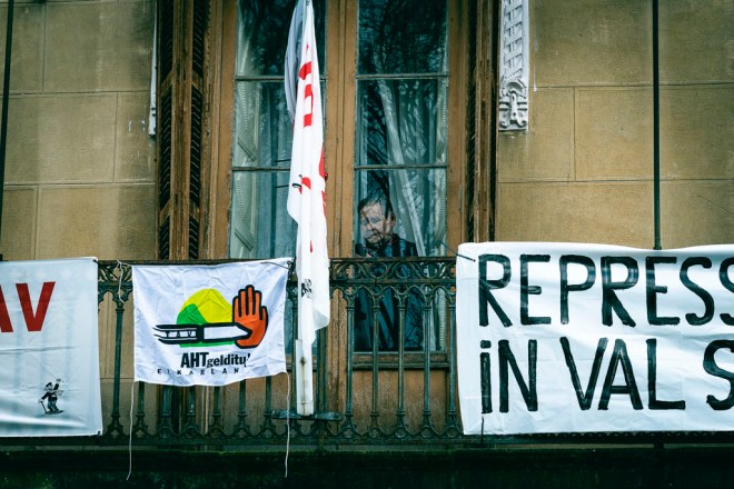 Desde Euskal Herria, exigimos al gobierno italiano el fin de toda persecución a la oposición NO TAV al tiempo que exigimos la paralización de este proyecto destructor, ruinoso y antisocial que supone el TAV, aquí, en Italia y en cualquier lugar del mundo.