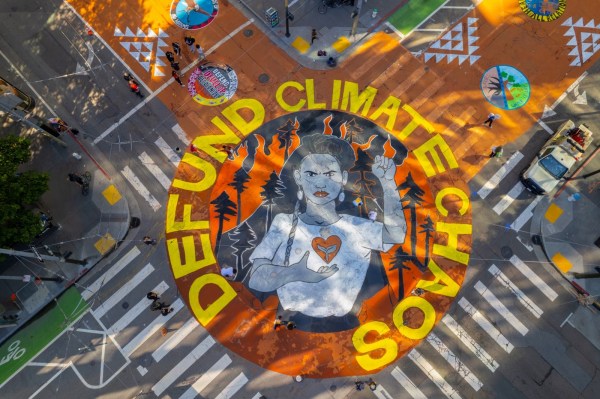 Murales callejeros de California para Glasgow: «¡Desfinancien el caos climático!»